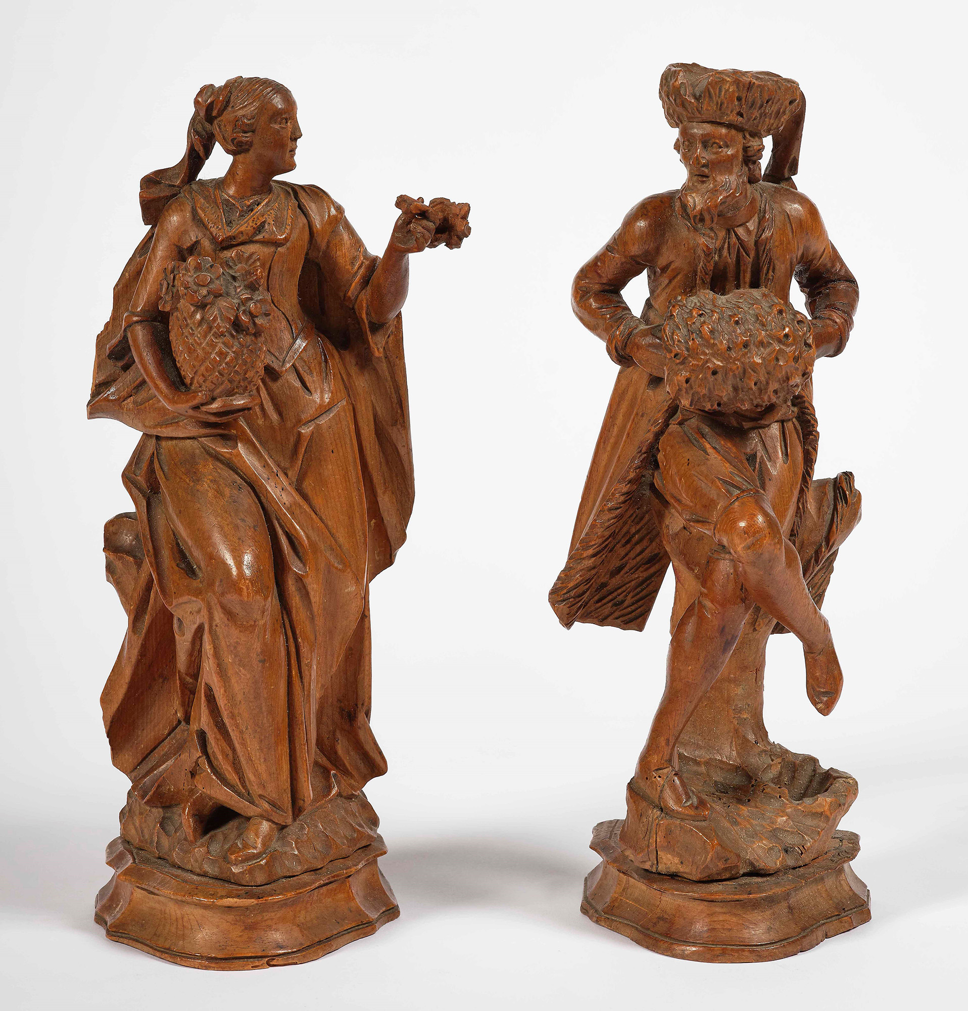 Allegorie dell’Inverno e dell’Estate. Legno scolpito. Arte veneta del XVIII secolo altezze cm 28 e cm 29