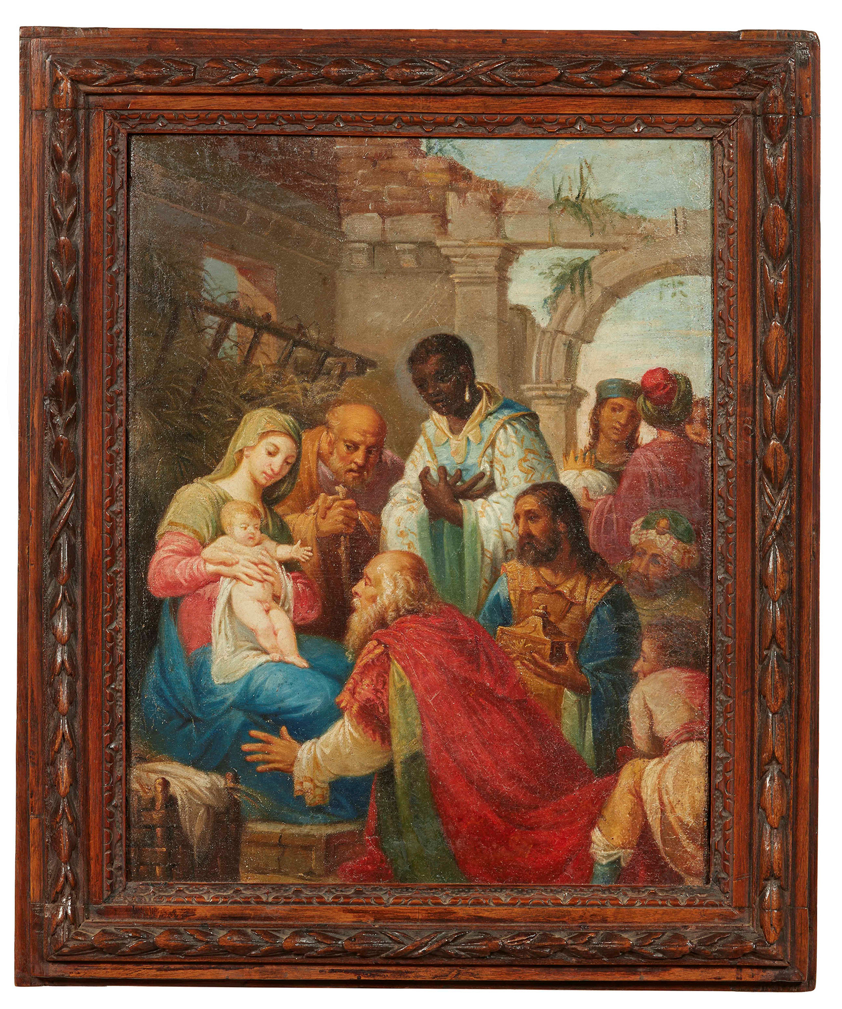Adorazione dei Magi Scuola del XVIII secolo olio su tela, W. 30,5 - H. 42 cm