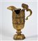 Versatoio. Bronzo fuso, sbalzato, dorato e cesellato. Oreficeria barocca, Germania o Paesi Bassi, XVIII secolo Foggia ad elmo rovesciato con corpo e base polilobati riccamente cesellati con motivi fitoformi. Ansa laterale sagomata terminante con protome leonina., Alt. 32 cm