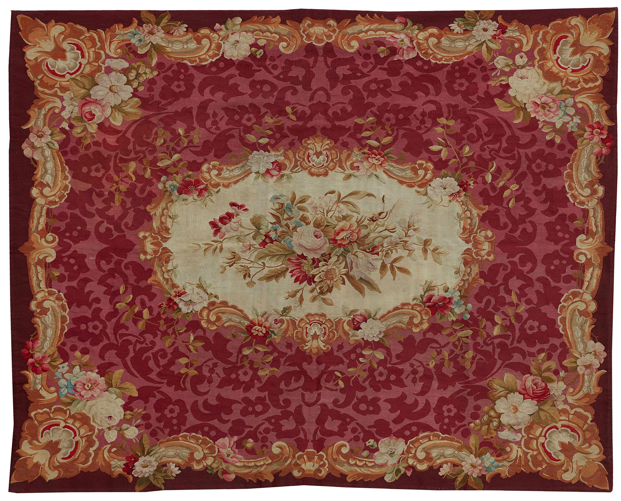 Aubusson Francia metà XIX secolo fondo rosa con medaglione centrale chiaro...