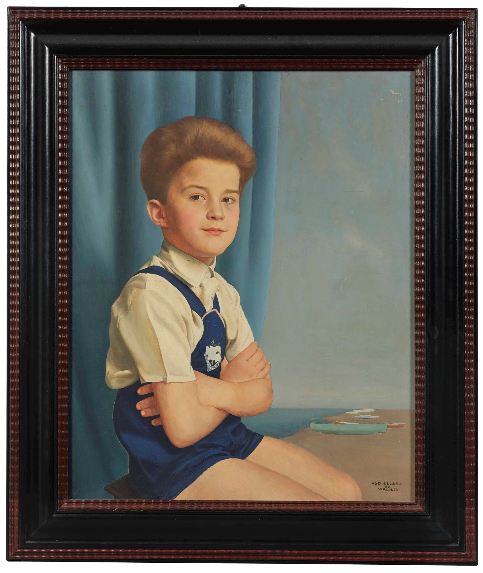 Ugo Celada da Virgilio (1895-1995), Ritratto di bambino olio su tela, Largh. 52 - Alt. 65 cm