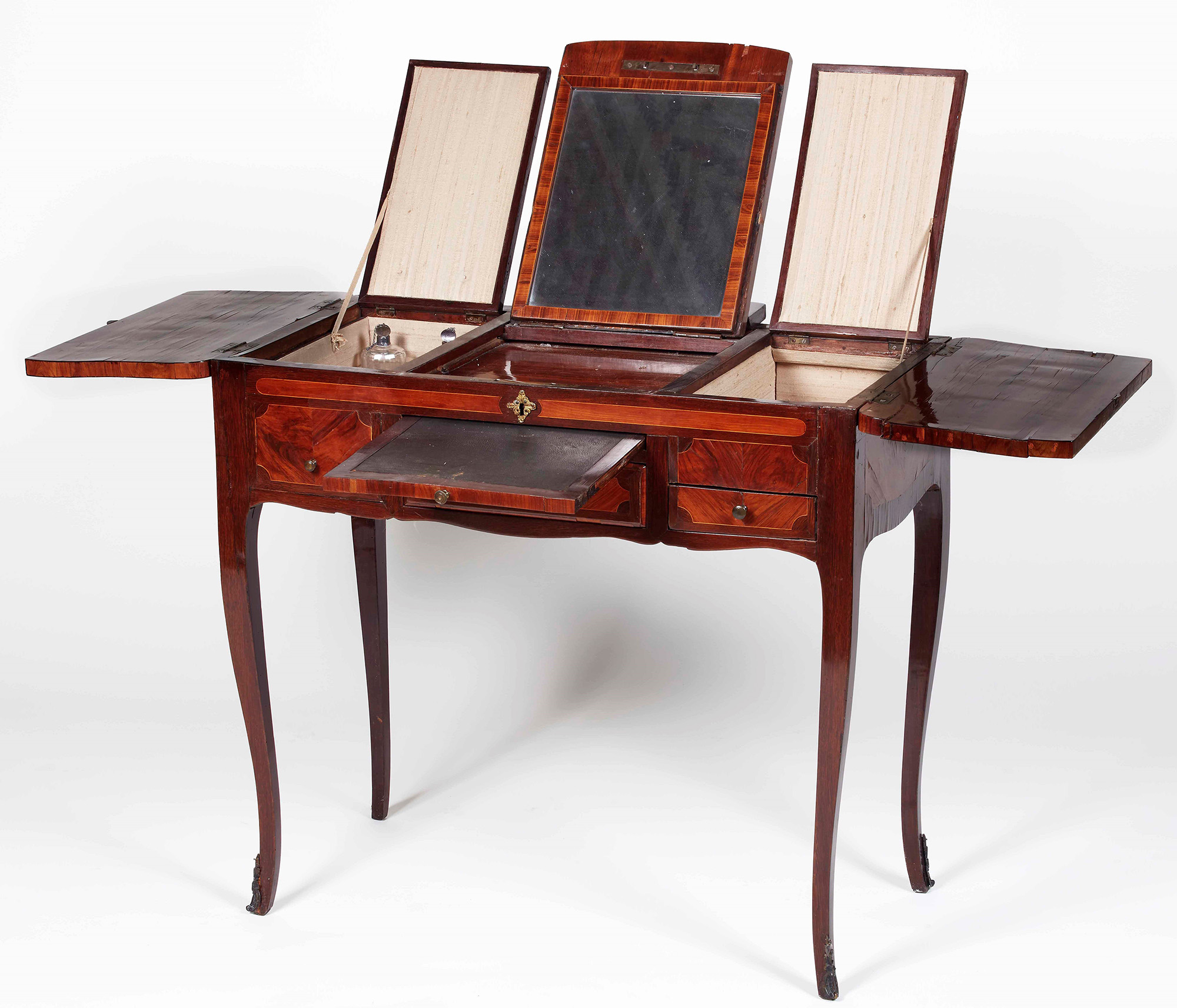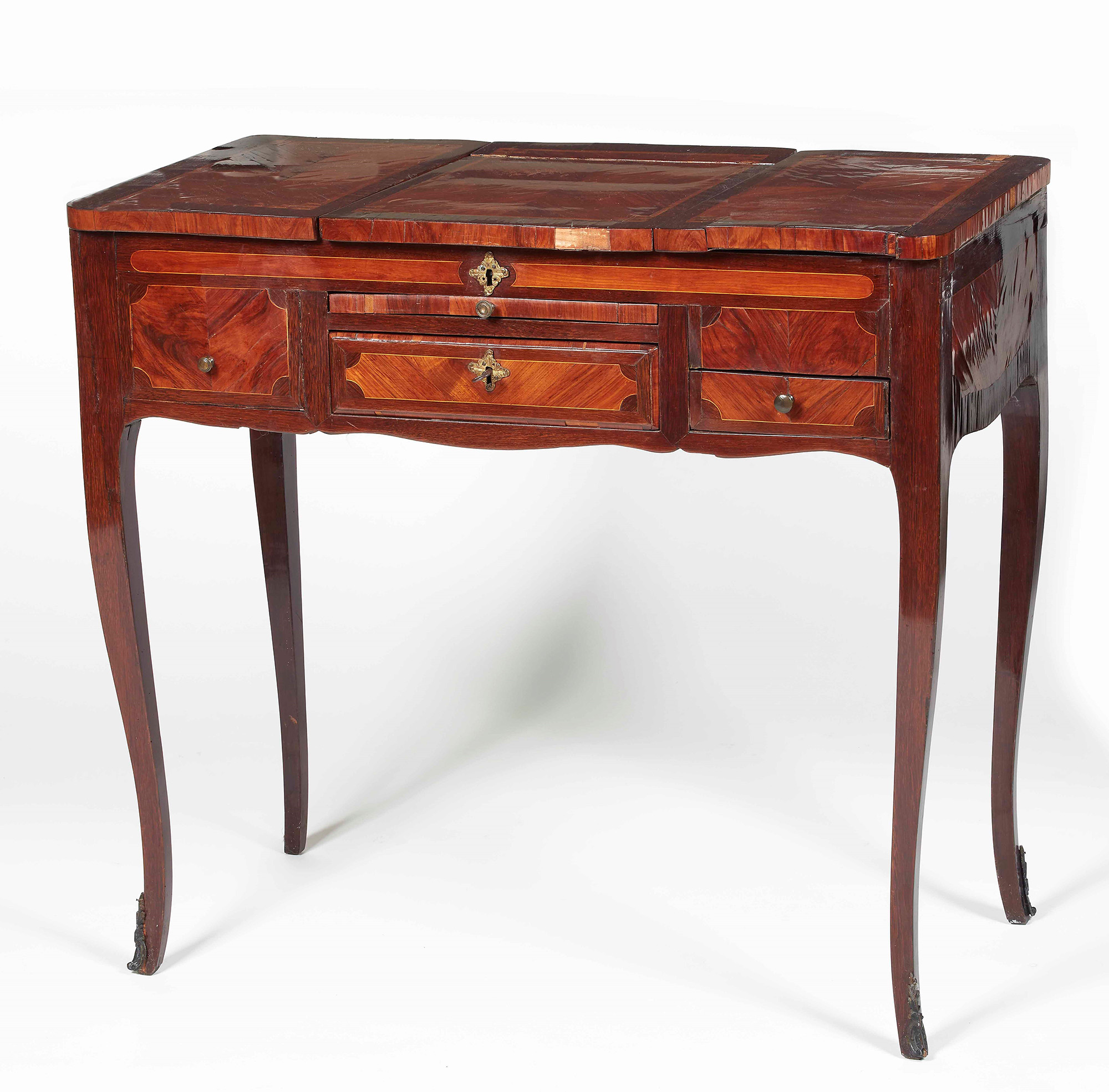 Tavolo da toilette in legno lastronato e filettato. XVIII secolo Fronte a tre...