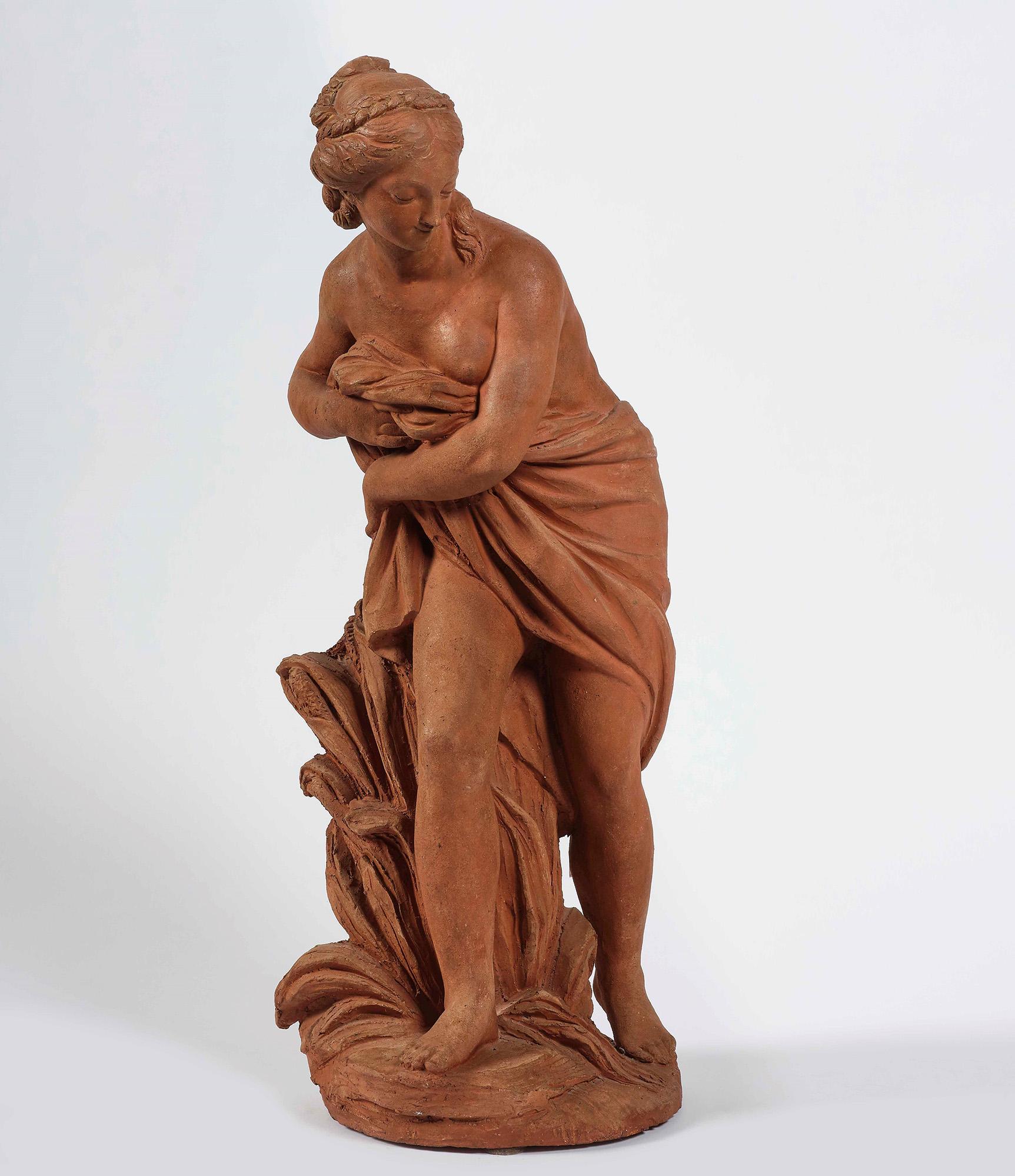 Venere al bagno. Terracotta firma e data incisi alla base “L.S. Boizot 1773”, Louis-Simon Boizot dopo essere entrato all’età di sedici anni all’accademia reale di pittura e scultura, non ancora ventenne vinse il primo premio di scultura che gli fruttò un soggiorno all’Accademia francese a Roma dal 1765 al 1770. Fu membro dal 1778 dell’Accademia Reale e diresse i lavori di scultura a Sevres dal 1773 al 1800., altezza cm 55