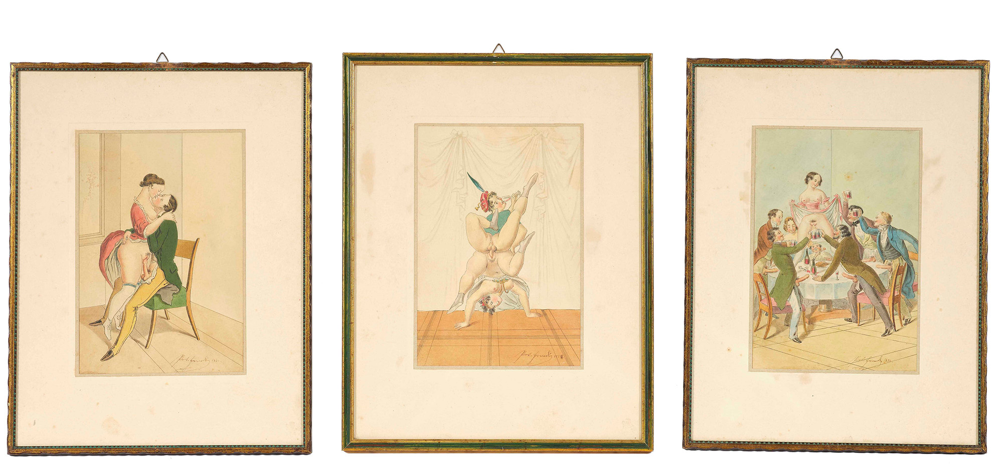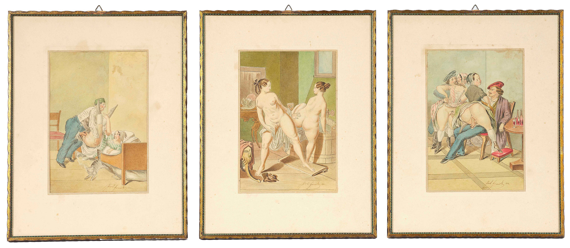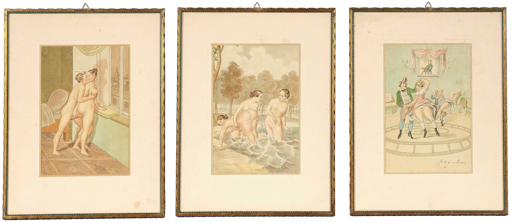 20 scene erotiche Artista del XIX secolo serie di disegni acquerellati su...