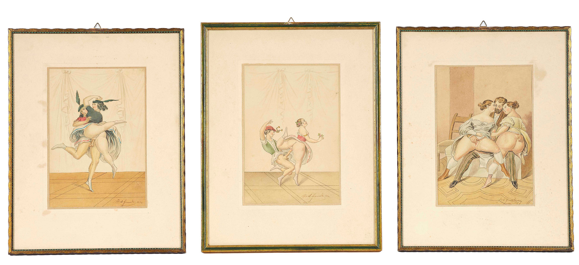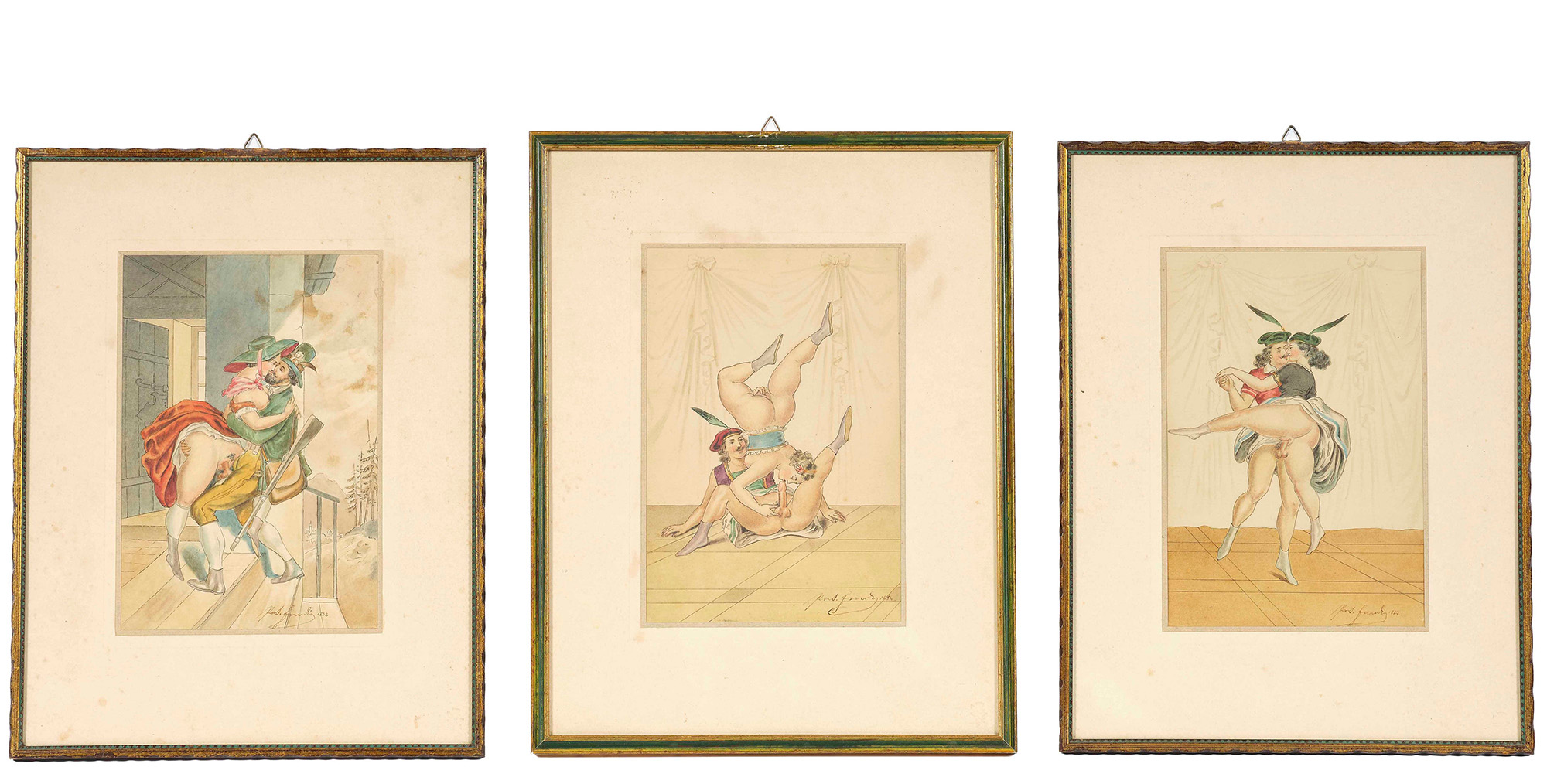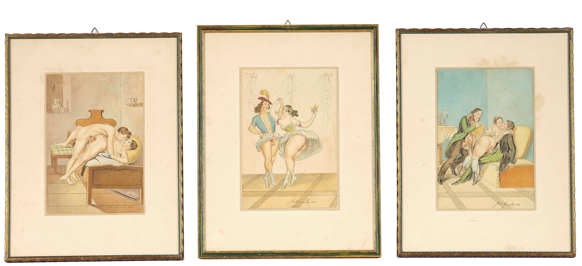 20 scene erotiche Artista del XIX secolo serie di disegni acquerellati su...