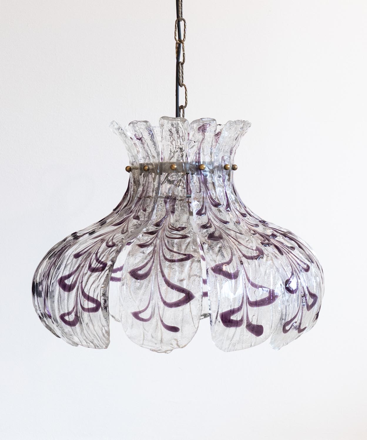 design Carlo Nason per Mazzega, struttura in metallo, elementi in vetro trasparente con inclusioni in vetro colorate. Produzione vetrerie Mazzega, lievi difetti