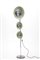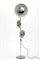 Lampada da terra a tre luci con diffusori a disco regolabili in metallo laccato color avorio e doppio disco interno cromato.