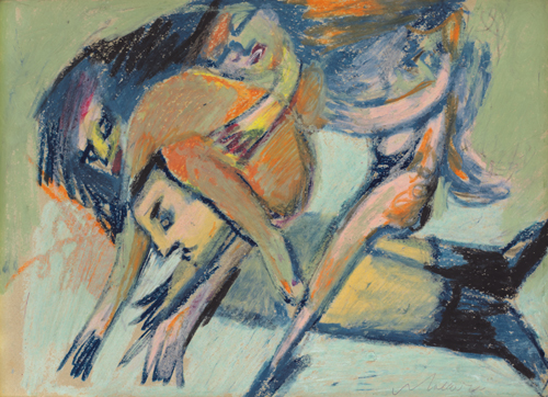MINO MACCARI Siena 24/11/1898 - Roma 17/06/1989 Senza titolo, 1979 tecnica mista su cartone cm. 35x49,5; firma in basso a destra, dichiarazione d'autenticità e di archiviazione dell'artista, anno, etichetta e timbro della Galleria Il Pastello (Roma) su foto.