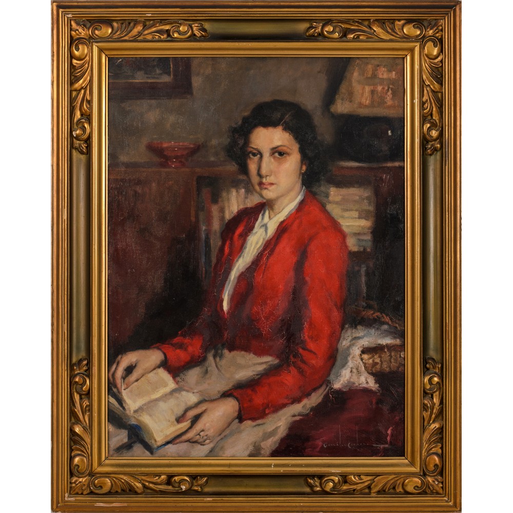 PITTORE XX SECOLO, Interno con figura femminile in lettura