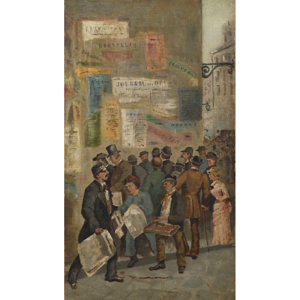 PITTORE DEL XIX/XX SECOLO, Folla in piazza, Olio su tela