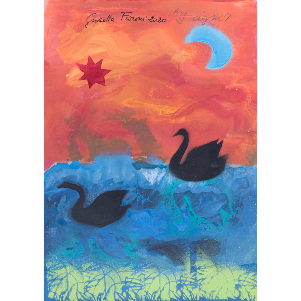 GIOSETTA FIORONI, I cigni, Tecnica mista su cartoncino