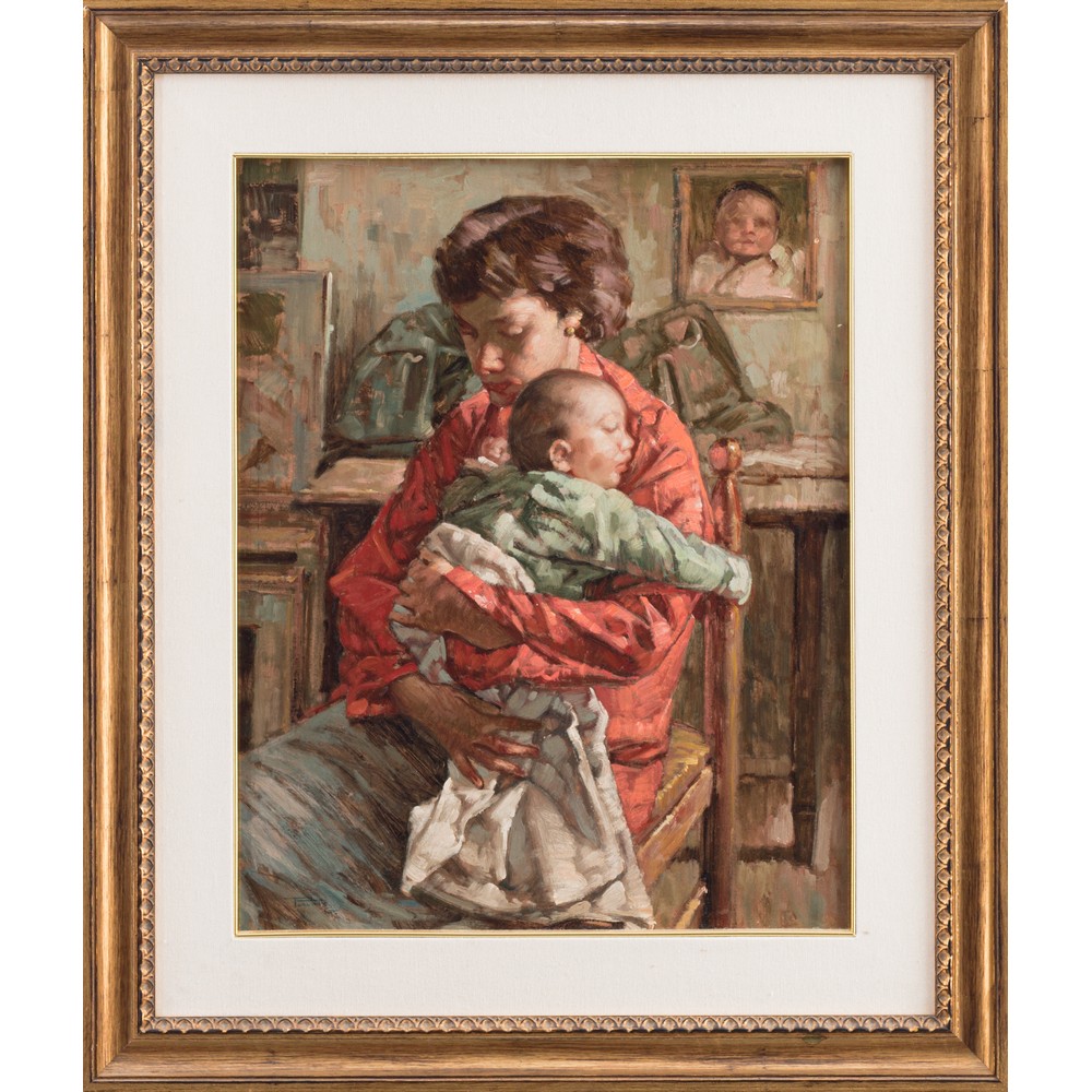 GIOVANNI PARLATO, Maternità in un interno, Olio su faesite