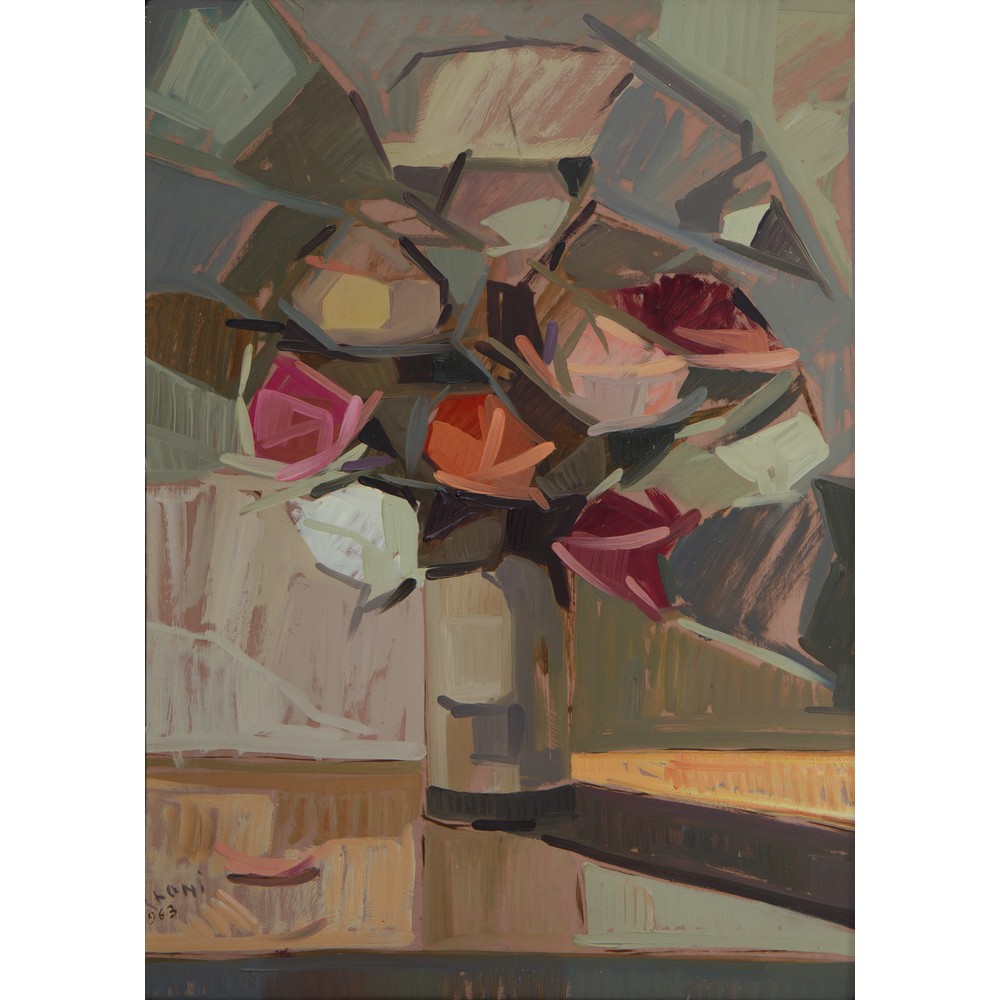 OTTAVIO CARBONI, Natura Morta con fiori , Olio su masonite