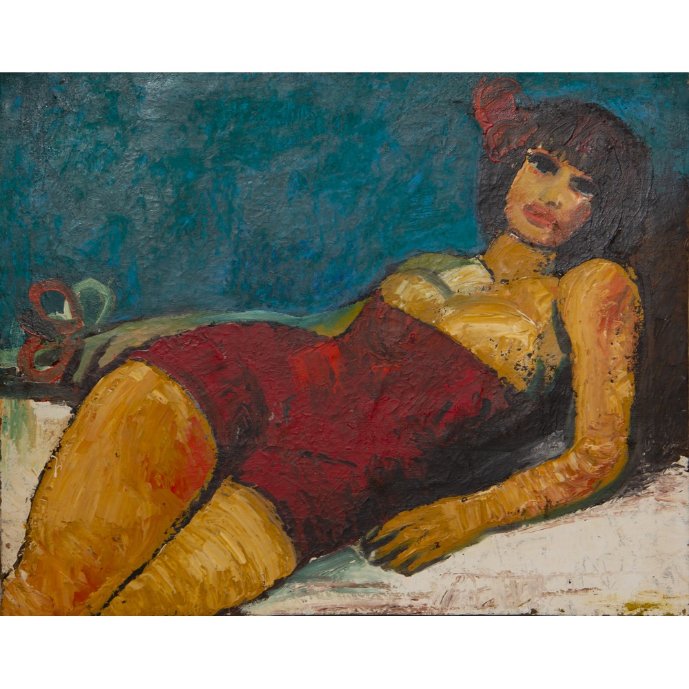 ANONIMO DEL XX SECOLO, Donna in rosso, Olio su tela