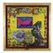 Gianni Versace Calabriae, carré in seta a fondo giallo; montato su supporto ligneo incorniciato; cm. 95x95 il carré, cm. 117x117 misura complessiva