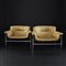Quattro poltrone con struttura in acciaio cromato imbottite e rivestite di similpelle beige.