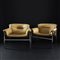 Quattro poltrone con struttura in acciaio cromato imbottite e rivestite di...