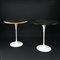 Coppia di tavolini Tulip con base in metallo verniciato bianco e piano circolare in marmo nero.