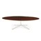 Tavolo con piano ovale in legno su unico montante centrale in metallo cromato.