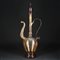 Versatoio in vetro soffiato fumè, con manico terminante a ricciolo; tappo...