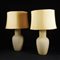 Coppia di vasi in vetro soffiato incamiciato giallo paglierino della serie Opalini. Montati a lume con annesso paralume.