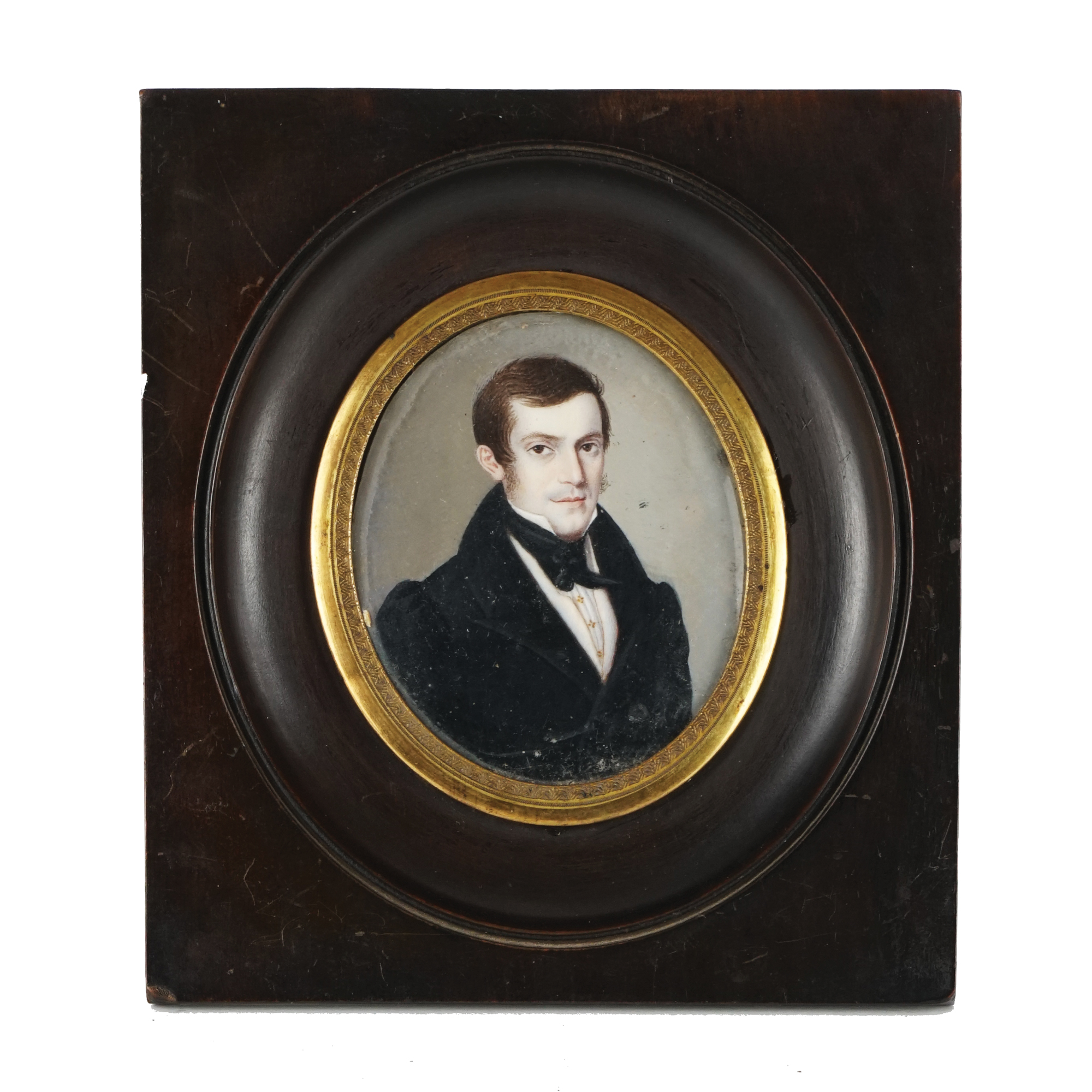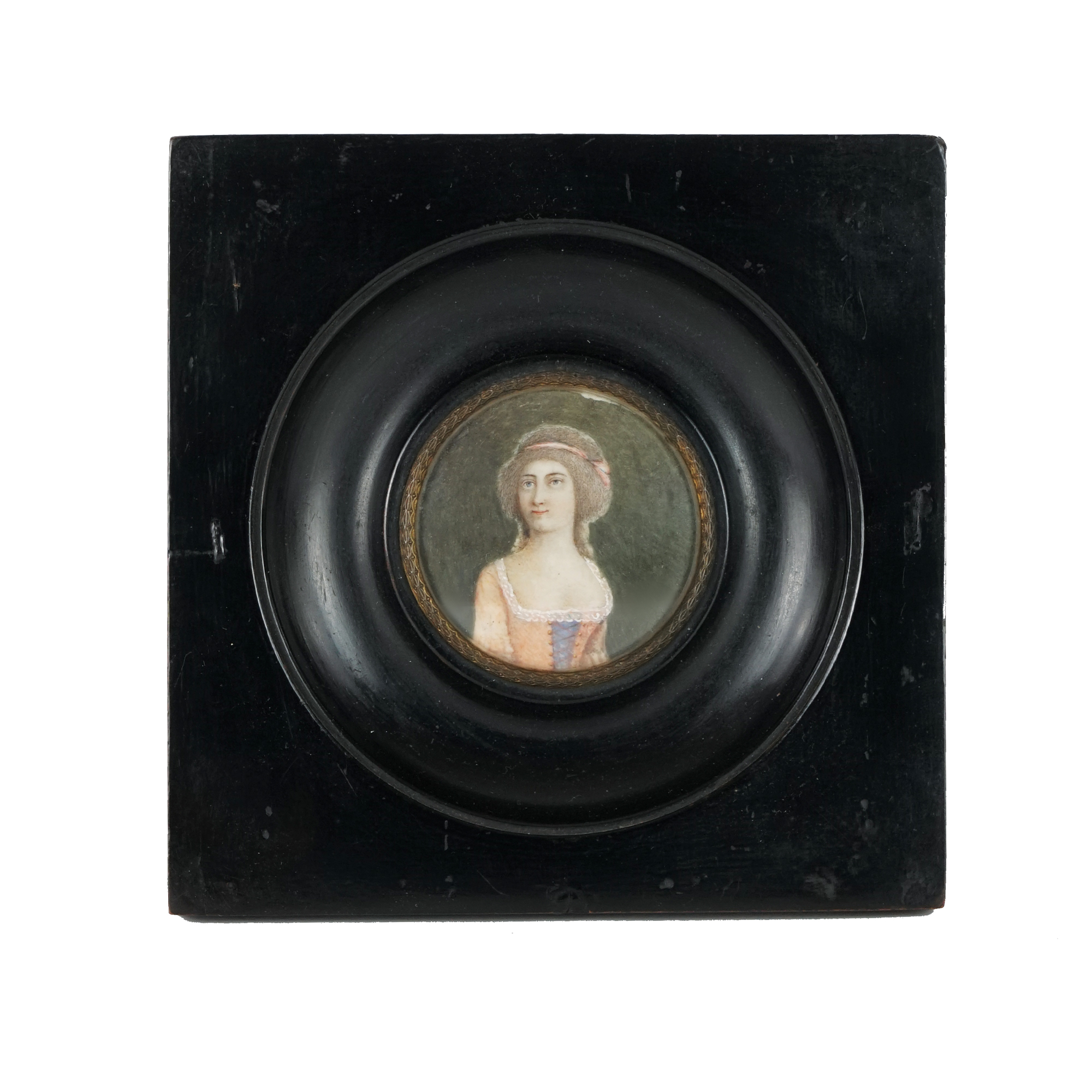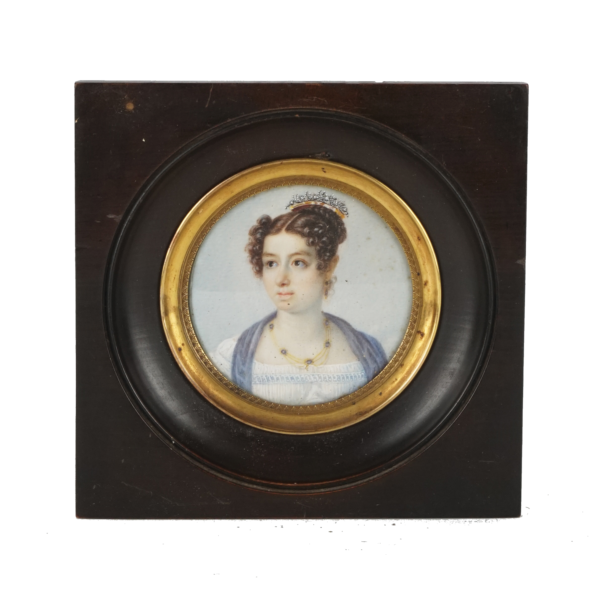 Tre miniature su avorio a sesto ovale e circolare raffiguranti rispettivamente due ritratti femminili e un ritratto maschile.
