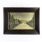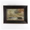 Coppia di ricami in fili di seta raffiguranti rispettivamente un paesaggio con stagno e animali e una veduta fluviale.