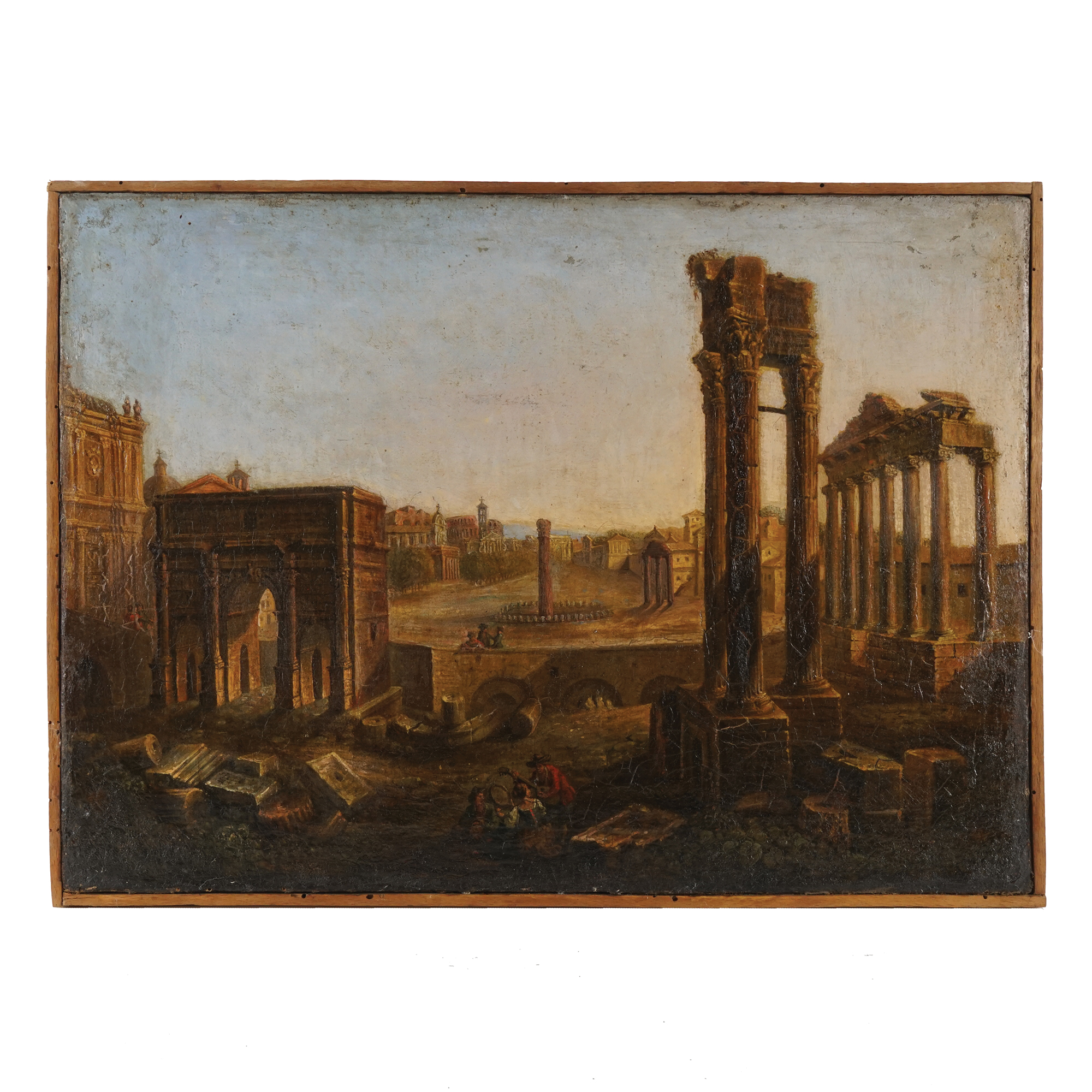 Pittore del XIX secolo Veduta del Foro Romano con figure