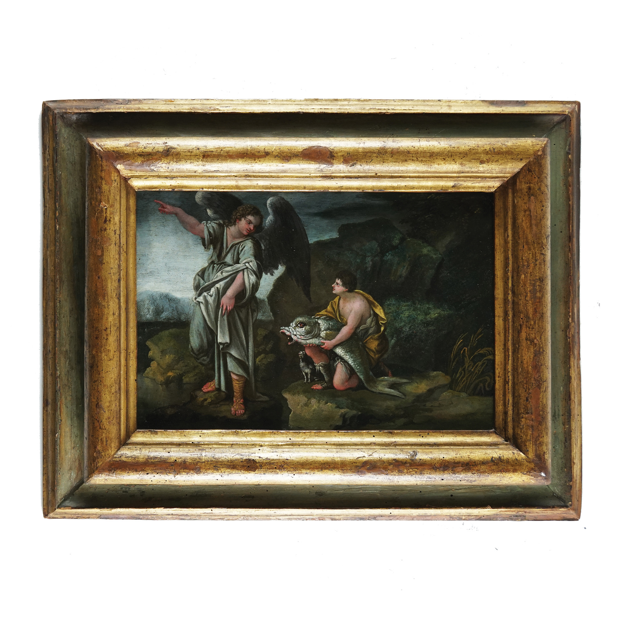 Pittore romano del XVII secolo Tobiolo e l'angelo
