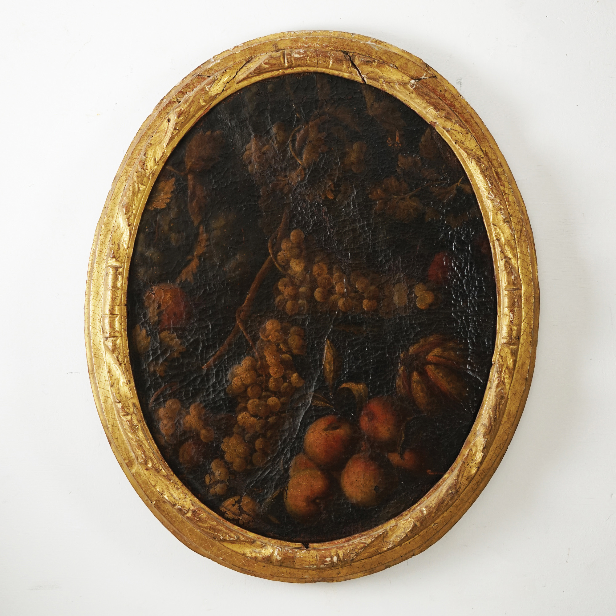 Lotto 185 | Pittore napoletano del XVII secolo Natura morta con uva, pesche e melone olio...