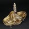 Calamaio in argento dorato con vassoio sagomato; nel cavetto due medaglioni...