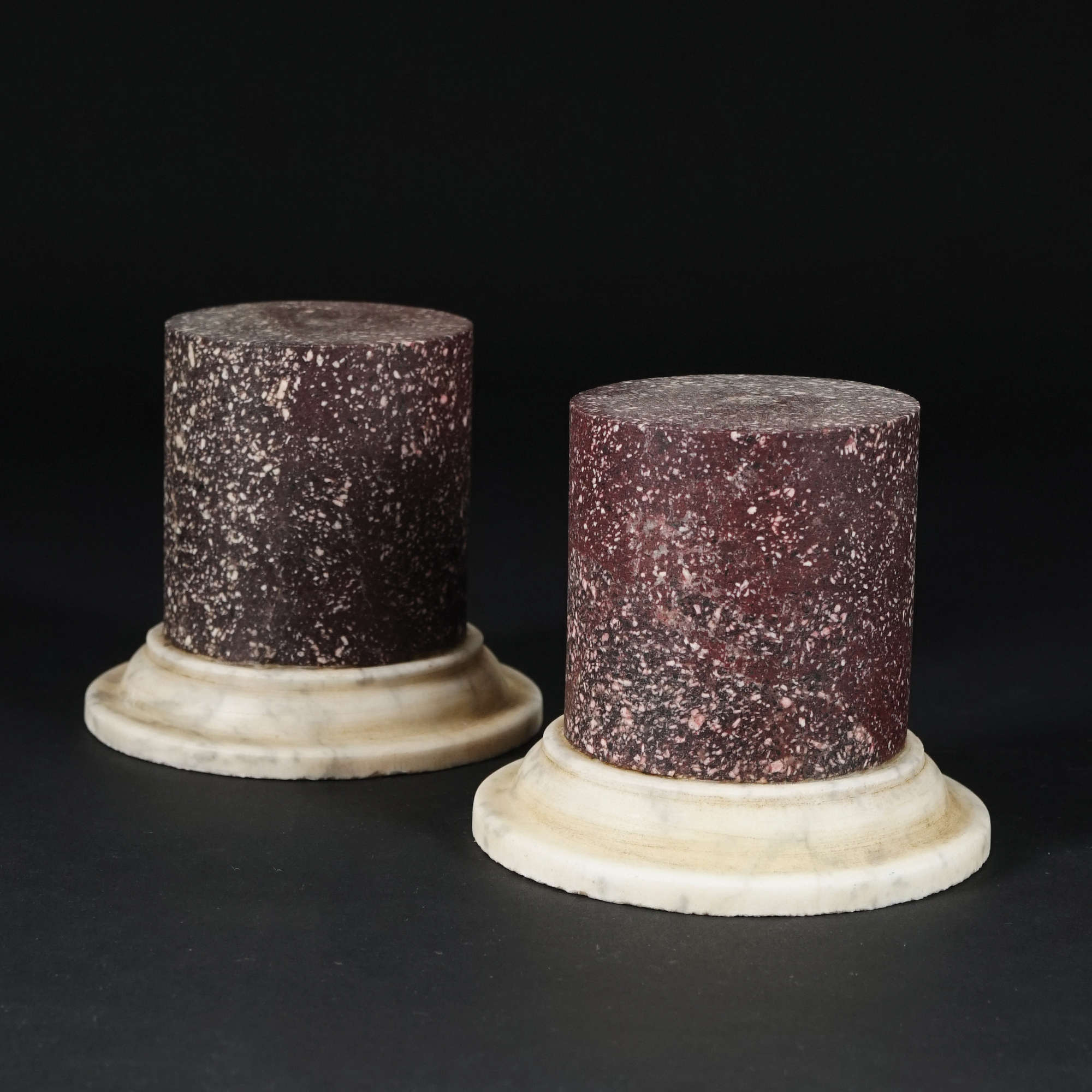 Lotto 265 | Coppia di piccole basi in porfido su piede circolare. XIX secolo, cm. 9x10