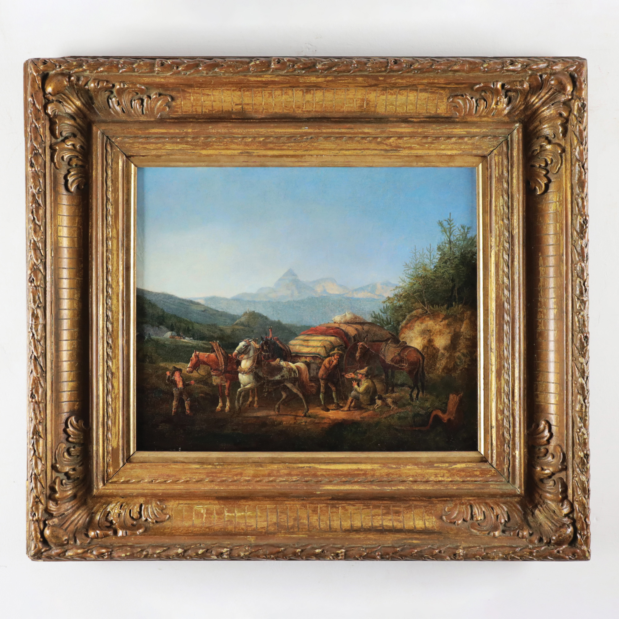 Pittore del XIX secolo La sosta olio su tela, cm. 31,5x39