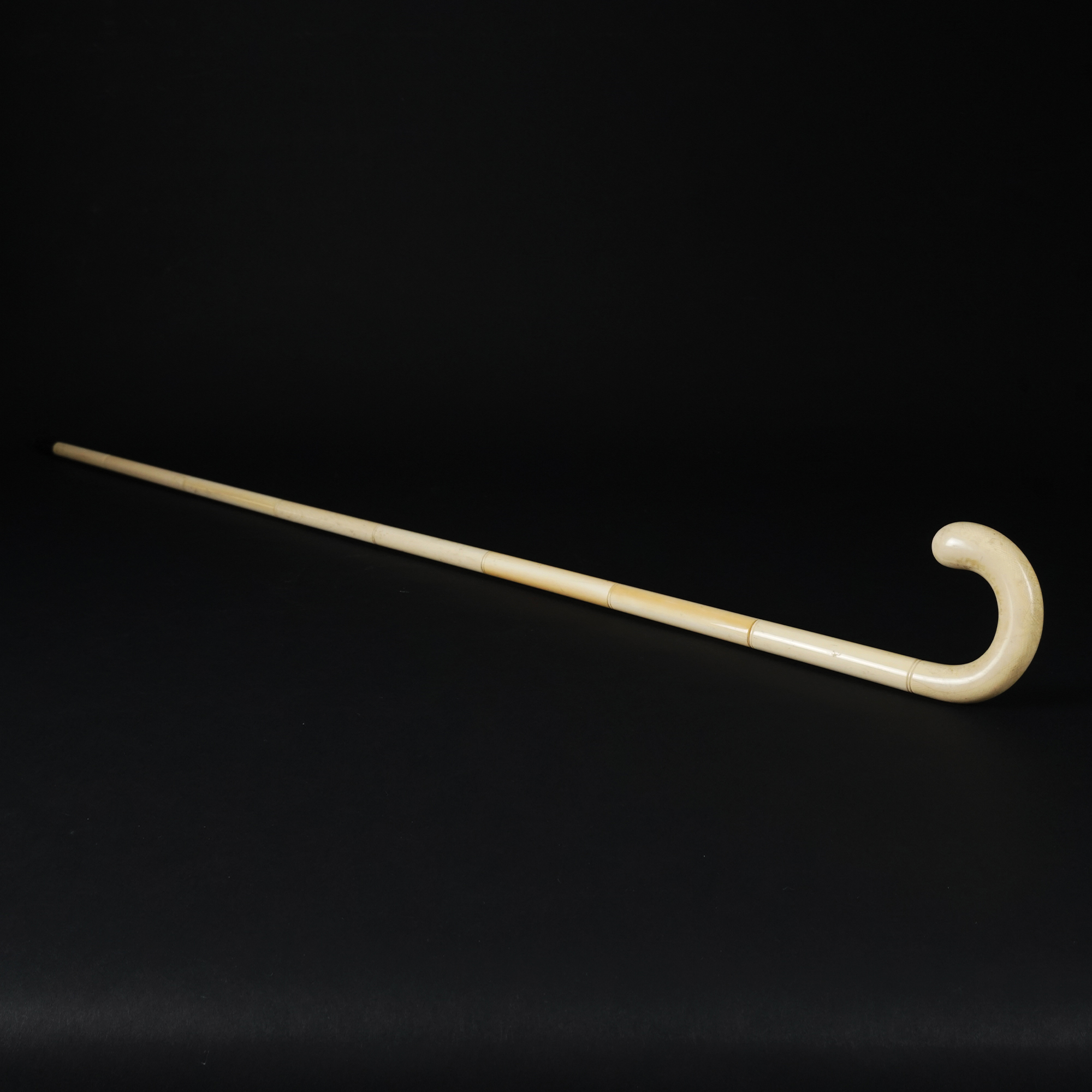 Bastone da passeggio in avorio con manico ricurvo e finale in argento. Inizi...