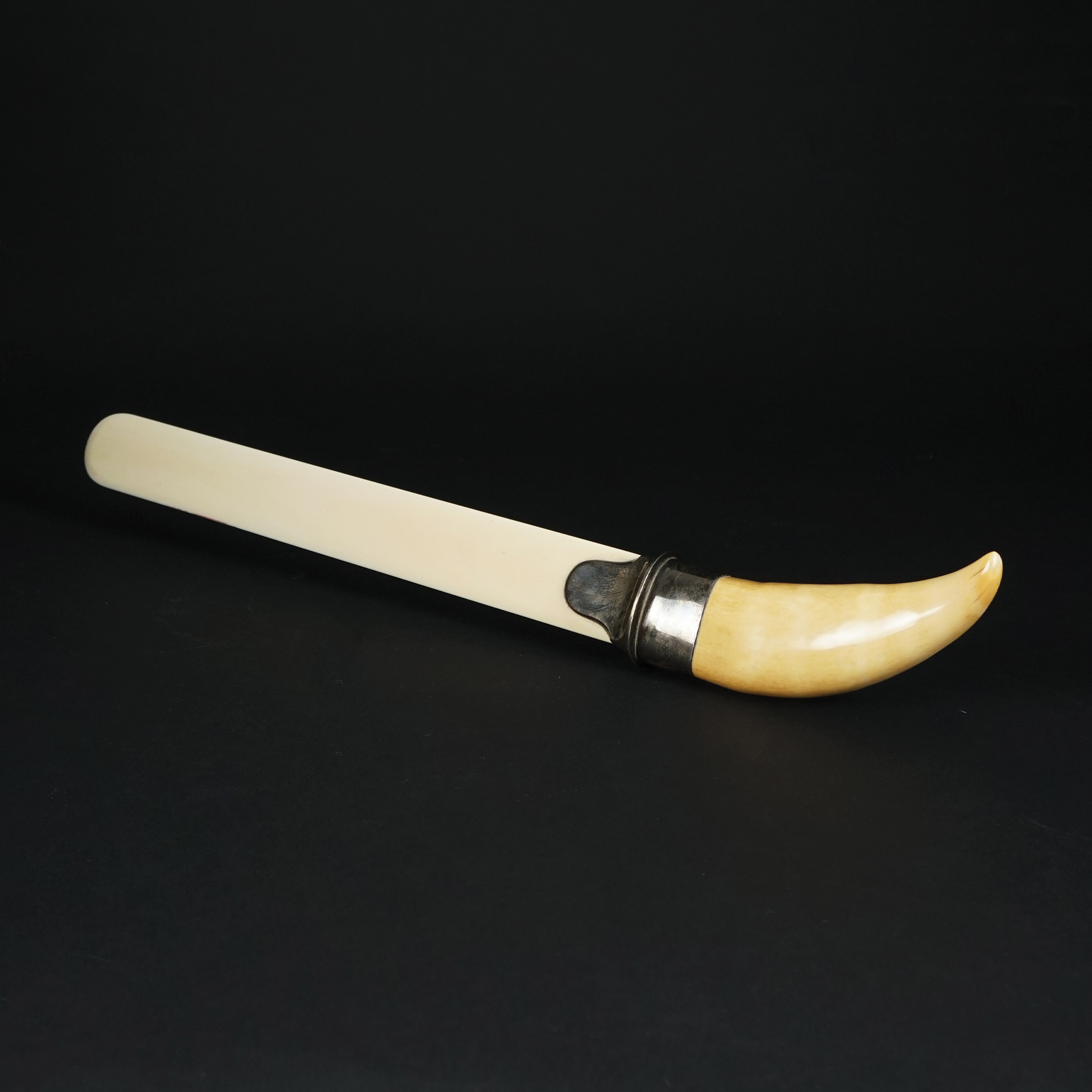Tagliacarte in avorio con manico in osso; montatura in argento sterling.