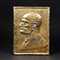 Placca rettangolare in rame dorato raffigurante Benito Mussolini, cm. 39x29