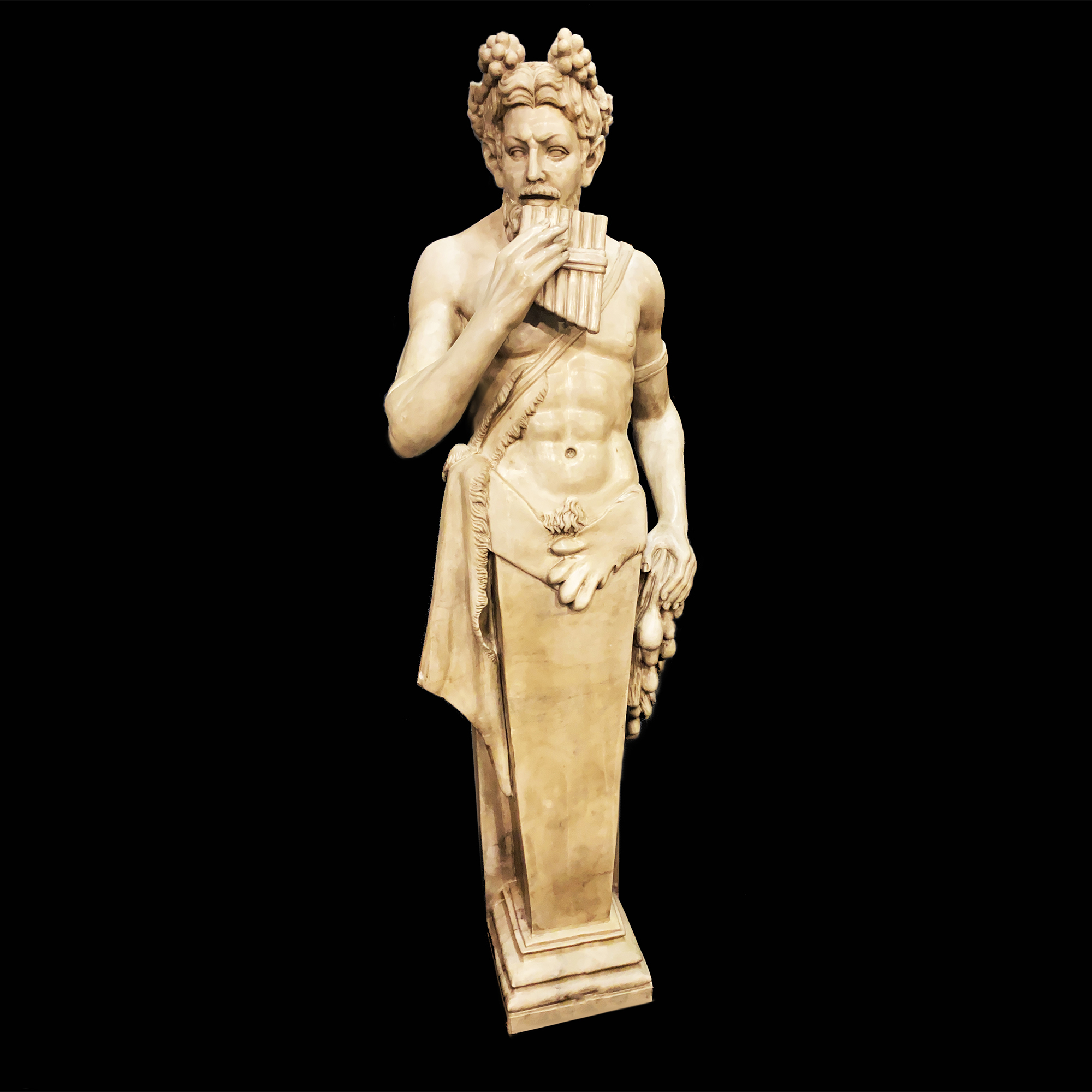 Quattro grandi sculture in marmo bianco, finemente scolpite a raffigurare le Quattro Stagioni quali erme virili e muliebri diversamente atteggiate, h. cm. 180 circa.