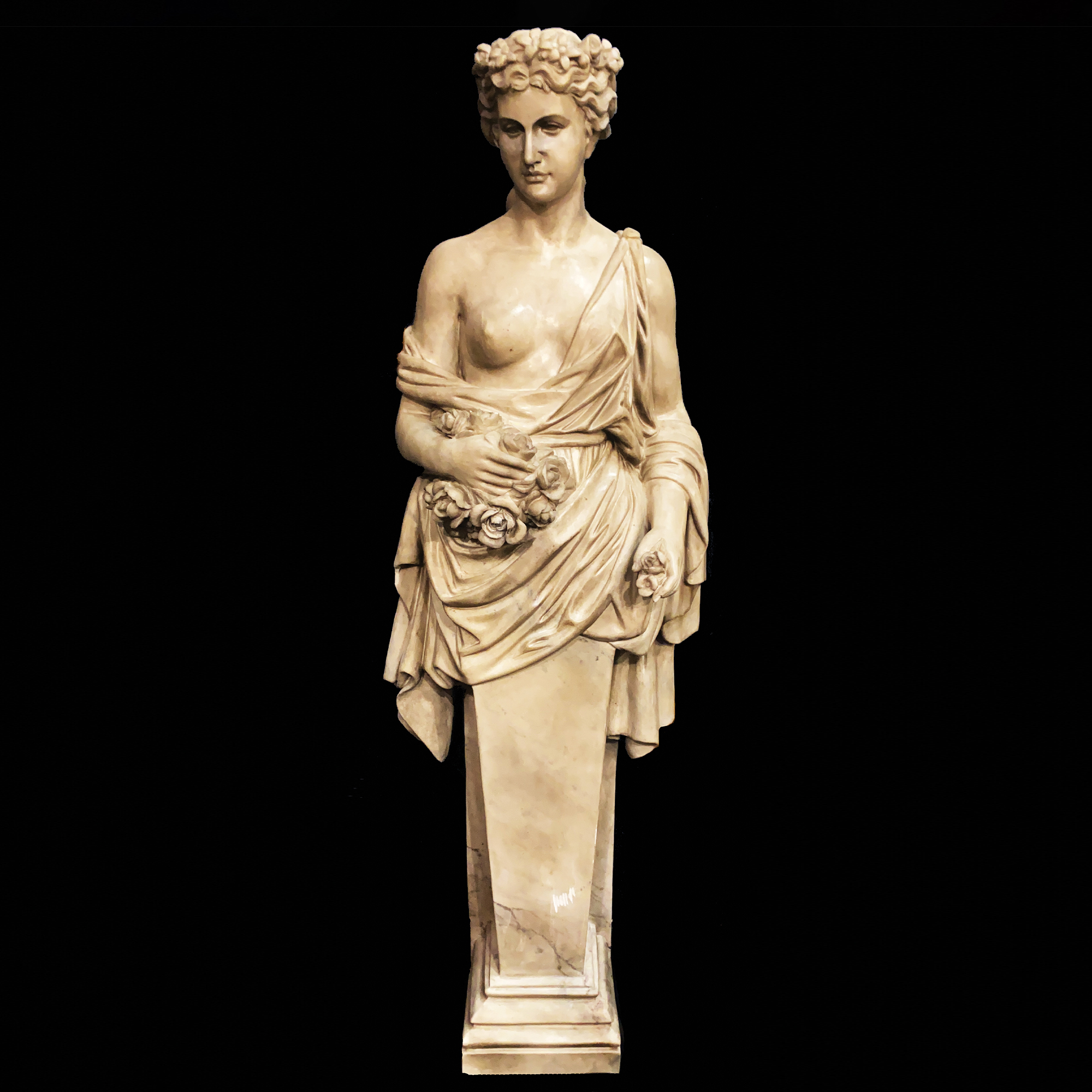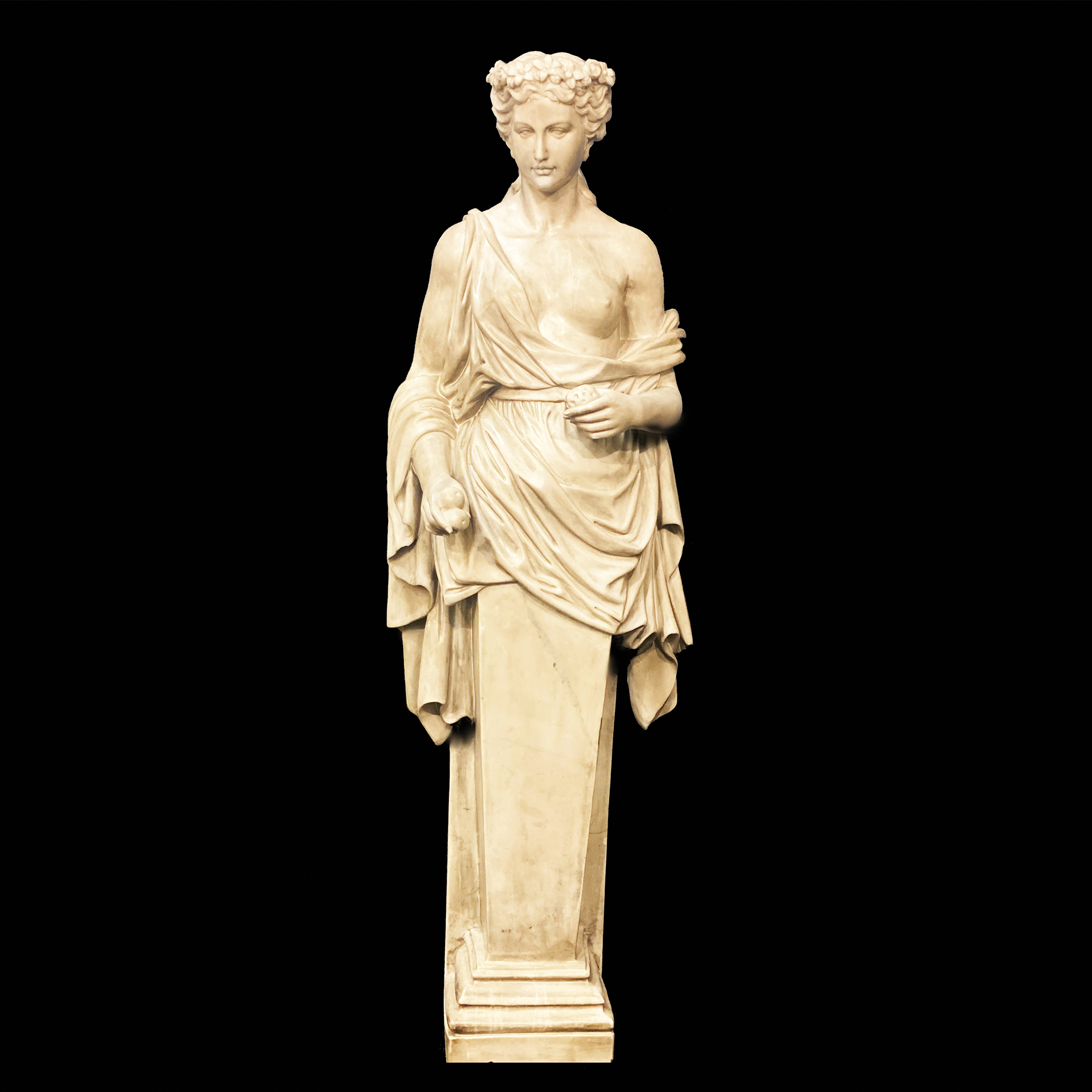 Quattro grandi sculture in marmo bianco, finemente scolpite a raffigurare le...