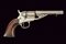 Colt 1862 Pocket Navy, Conversione Rimfire, con estrattore, datazione: 1873 - 1875 provenienza: USA, Canna tonda rigata da 4-1/2', con mirino, marcatura in una riga. Cal. 38 rimfire. Tamburo ribassato con incisione della diligenza, a cinque colpi, marcato 'COLT'S PATENT 7884'. Meccanica funzionante. Matr. '61xx' su canna, castello, ponticello e cornice dell'impugnatura. Marcature dei brevetti sul lato sinistro. Ponticello marcato '38 cal'. Nichelatura antica al 95%. Impugnatura in noce liscia. lunghezza 25.5 cm.
