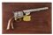 Raro Richards Conversion Colt 1860 Army revolver, datazione: Terzo quarto del XIX Secolo provenienza: USA, Modello di transizione (Second Model o Type II) fra il Richards e il Richard-Mason; dotato di canna ed estrattore del primo tipo, conversione e cane del secondo. Con canna rigata da 8 pollici, con anima in ottime condizioni, cal. 44 Colt centerfire. Brevetti del 1871 e 1872 marcati sul fianco sinistro del castello. Conserva il 50% della finitura nichelata originale. Guancette in legno verniciato; incisione navale sul tamburo ben definita e di qualità. In cassetta di legno foderato non pertinente. Prodotto in soli novemila esemplari. Vedi 'Flayderman's Guide': 5B-119. lunghezza 36.5 cm.