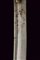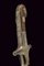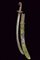 Shamshir da ragazzo, datazione: XIX Secolo provenienza: Turchia, Lama curva a un filo e breve controfilo, sgusciata. Elso in metallo color argento con bracci cuspidati e piccole incisioni floreali. Impugnatura in corno con banda in metallo color argento e rosette. Fodero in legno rivestito con velluto color verde (parzialmente liso) e con ricami in filo argentato nel segmento centrale. La cappa in metallo color argento, ornata a cornicette. lunghezza 64 cm.