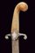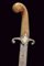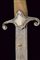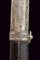 Shamshir con fornimenti in argento, datazione: Seconda metà del XIX Secolo provenienza: Turchia, Lama leggermente curva a un filo in damasco, con dorso leggermente lavorato a 'T', la base con punzone arabo rimesso in oro. Fornimento in argento finemente inciso e con punzone arabo. Guancette in corno, la cornice probabilmente restaurata. Fodero in legno rivestito di cuoio cucito con filo metallico, con fornimenti in argento inciso a motivi floreali e muniti di punzoni. Due anelli di sospensione. lunghezza 91 cm.