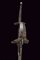 Zulfikar, datazione: XVIII Secolo provenienza: India, Robusta, larga lama curva a un filo e controfilo, il debole biforcuto, il dorso e la parte del controfilo la lavorate a sega, sgusciatura centrale e duplice scanalatura dorsale. Tipico fornimento in ferro riccamente decorato in argento a motivi floreali (mancanze), l'impugnatura sempre in ferro. Molto raro. Vedi un esemplare molto simile in 'Islamic Weapons Maghrib to Moghul' di Anthony C. Tirri, pag. 331 fig. 252. lunghezza 94.5 cm.