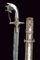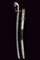 Bel Saif con fornimenti in argento, datazione: Inizio del XIX Secolo provenienza: Penisola Araba, Larga lama curva a un filo e controfilo con triplice scanalatura, con zone di ruggine. Tipico fornimento completamente rivestito di lamina d'argento, finemente inciso a motivi floreali e geometrici, completo di cinque catenelle. Fodero in legno rivestito di cuoio con bei fornimenti in lamina d'argento incisi e decorati a fiorami disegni geometrici. Due anelli di sospensione. Vedi tre Saif simili in 'Islamic and Oriental Arms and Armour' di Robert Hales, pagina 245. lunghezza 91 cm.