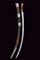 Rara pseudo Shaska, datazione: Prima metà del XIX Secolo provenienza: Afganistan, Lama curva a un filo con ampia sgusciatura, innesto in ferro faccettato, tipica impugnatura in legno ad orecchi. Fodero in legno rivestito di pelle bruna impressa al dorso con motivi geometrici, fornimenti in ferro, puntale e fascette di sospensione con campanelle, parte inferiore della bocchetta con fori tondi e smerlature. lunghezza 103 cm.