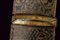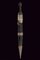 Raro e grande Qama Ottomano, datazione: primo quarto del XIX Sec. provenienza: Turchia, Lunga lama a due fili con doppio sguscio per quasi tutta la lunghezza e punta acuminata. Reca incisi sul forte due leoni affrontati entro tondi smerlati e cartigli sagomati su ambo le facce, uno dei quali con il nome dell' artefice: 'Amal-e Ibrahim' (opera di Ibrahim). Impugnatura con guancette in corno bruno con perni ad ogiva sgusciati e basette circolari e decorate da filettature in oro. Fodero in legno rivestito di pelle nera con fornimenti in argento niellati a figure geometriche. L' ovale del cartiglio centrale reca l'iscrizione 'If'tha lana bi haqq hamilaha rahmatan fa huwa min Suleyman' (Apri per noi con la Verità per colui che porta questa spada con la Misericordia poiché è da Suleyman) lunghezza 72 cm.
