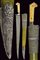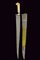 Bel coltello khyber, datazione: Fine del XIX Secolo provenienza: Afganistan, Larga lama a un filo probabilmente in damasco con dorso a 'T'. Impugnatura in argento liscio con guancette in avorio, bottone con pendente traforato in argento. Fodero in legno rivestito di seta verde con due fornimenti in argento riccamente incisi e traforati. lunghezza 63.5 cm.