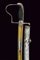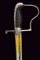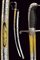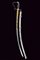 Sciabola da ufficiale con bellissima lama, datazione: Metà del XIX Secolo provenienza: Ducato di Parma e Piacenza, Lama curva a un filo e controfilo con sguscio centrale, la prima parte incisa e dorata su fondo blu o opaco a finissimi trofei e motivi floreali, il dorso decorato a fogliame. Fornimento monoelso in acciaio con alette fermafodero e cappa scanalati. Impugnatura a spire con trecciola metallica. Fodero in ferro con due anelli di sospensione su borchie. lunghezza 96 cm.