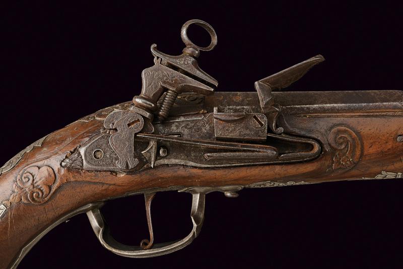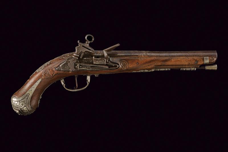 Bellissima pistola a pietra focaia con fornimenti in argento