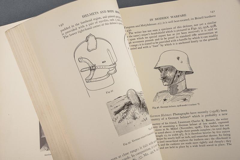 Dean, Bashford, datazione: 1920 provenienza: New Haven, 'Helmets and Body Armor in Modern Warfare', New Haven, Oxford University Press, MDCCCCXX; 317 pagine con illustrazioni in b/n. Copertina rigida in tela con titolo in oro. Raro. altezza 26 cm.